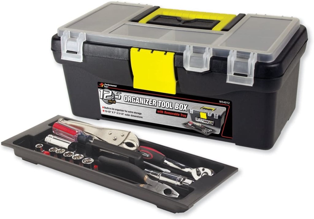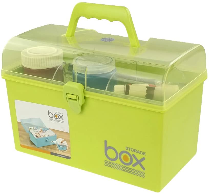 I love this one. It’s bright green (also comes in pink!), has a single removeable tray, and is cute as a button. It’s hard to tell from the dimensions how well my seed packets will fit in the bottom. But, you know, they’re paper. I can fold them over, right? $18 bucks feels like a few bucks to much for this little box, but maybe it’s a cute tax. Ima get it.